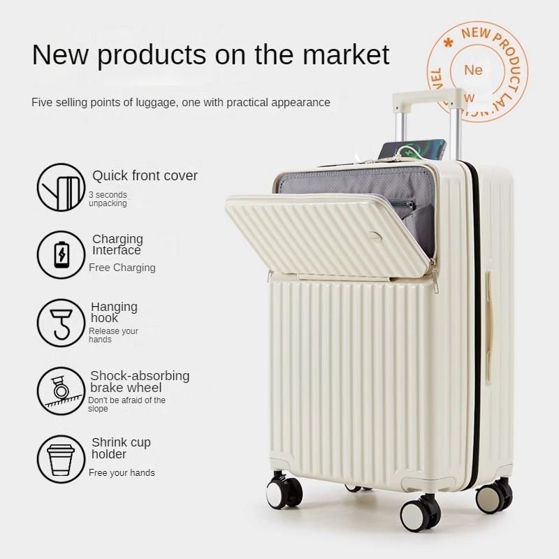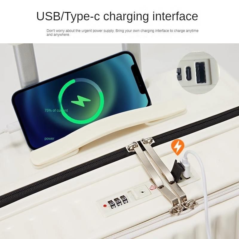 Jovem Moda Multifuncional Frente Aberta Mala de Viagem Bolsa com Carregador USB e Porta-copos Bagagem