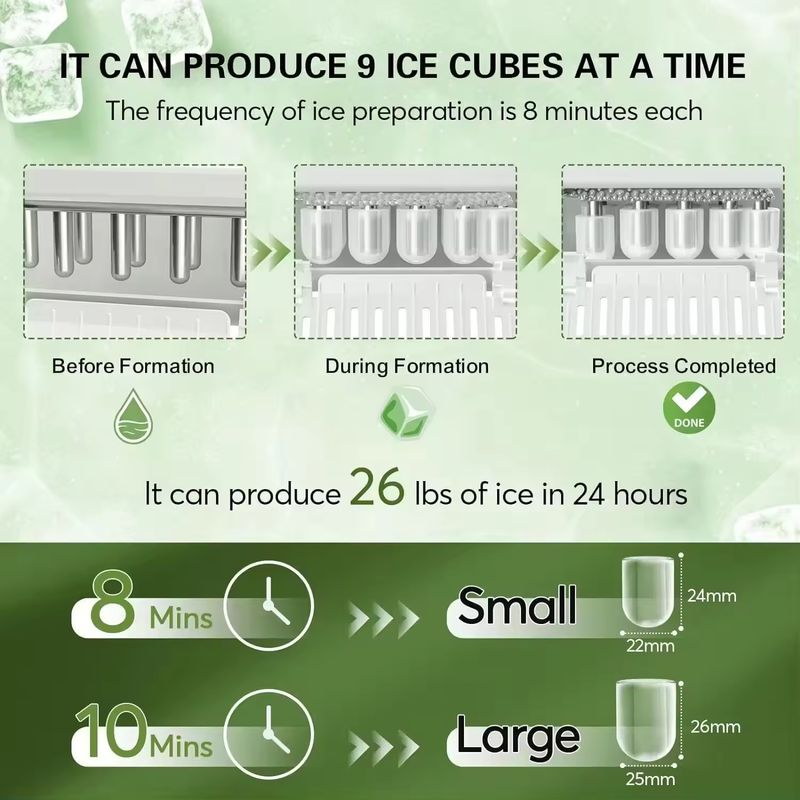 Mini máquina de gelo pequena automática, máquina de gelo comercial e doméstica